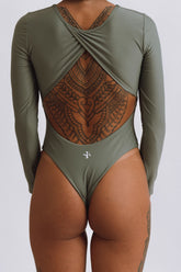 This one piece long sleeve swimsuit will have you surfing in the ocean or enjoying the end of your day on a bar in impeccable style, it looks amazing with denim shorts!