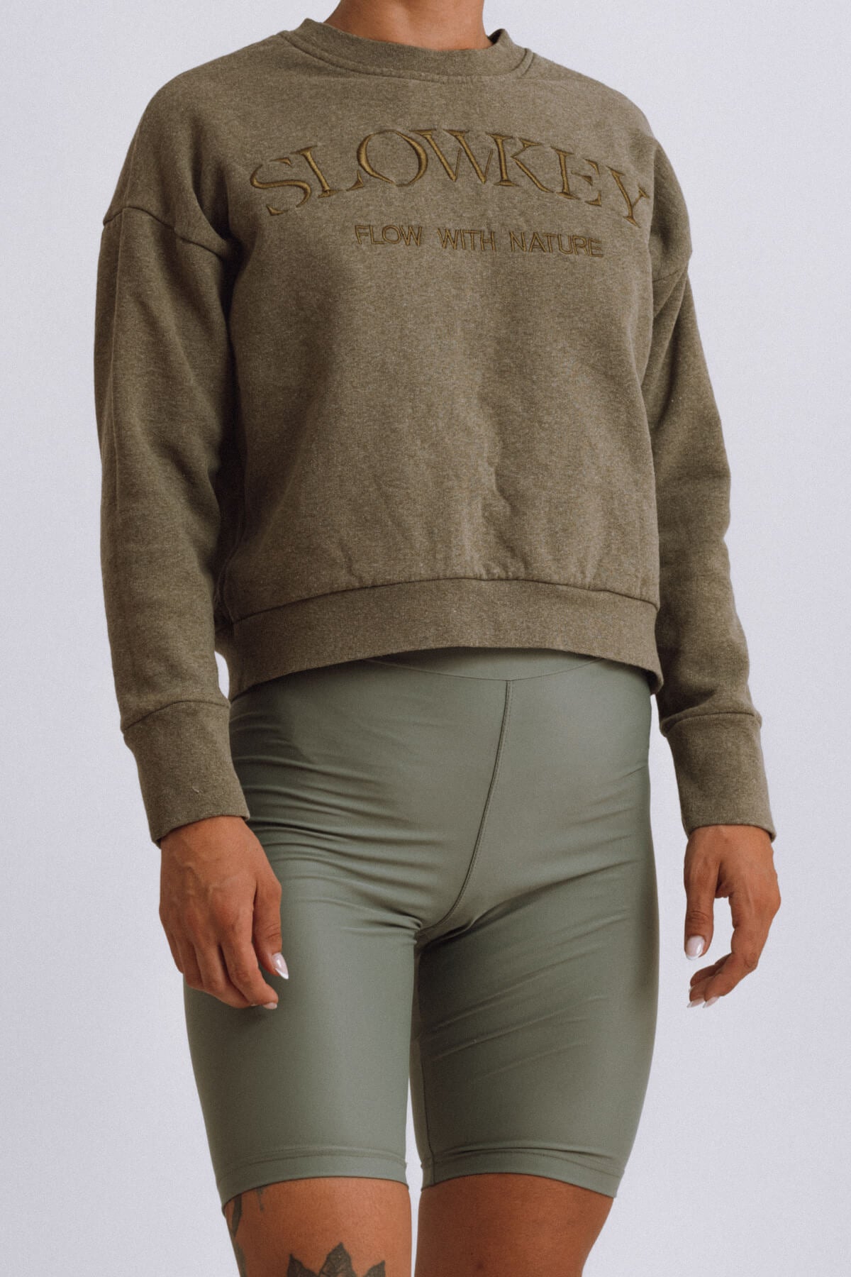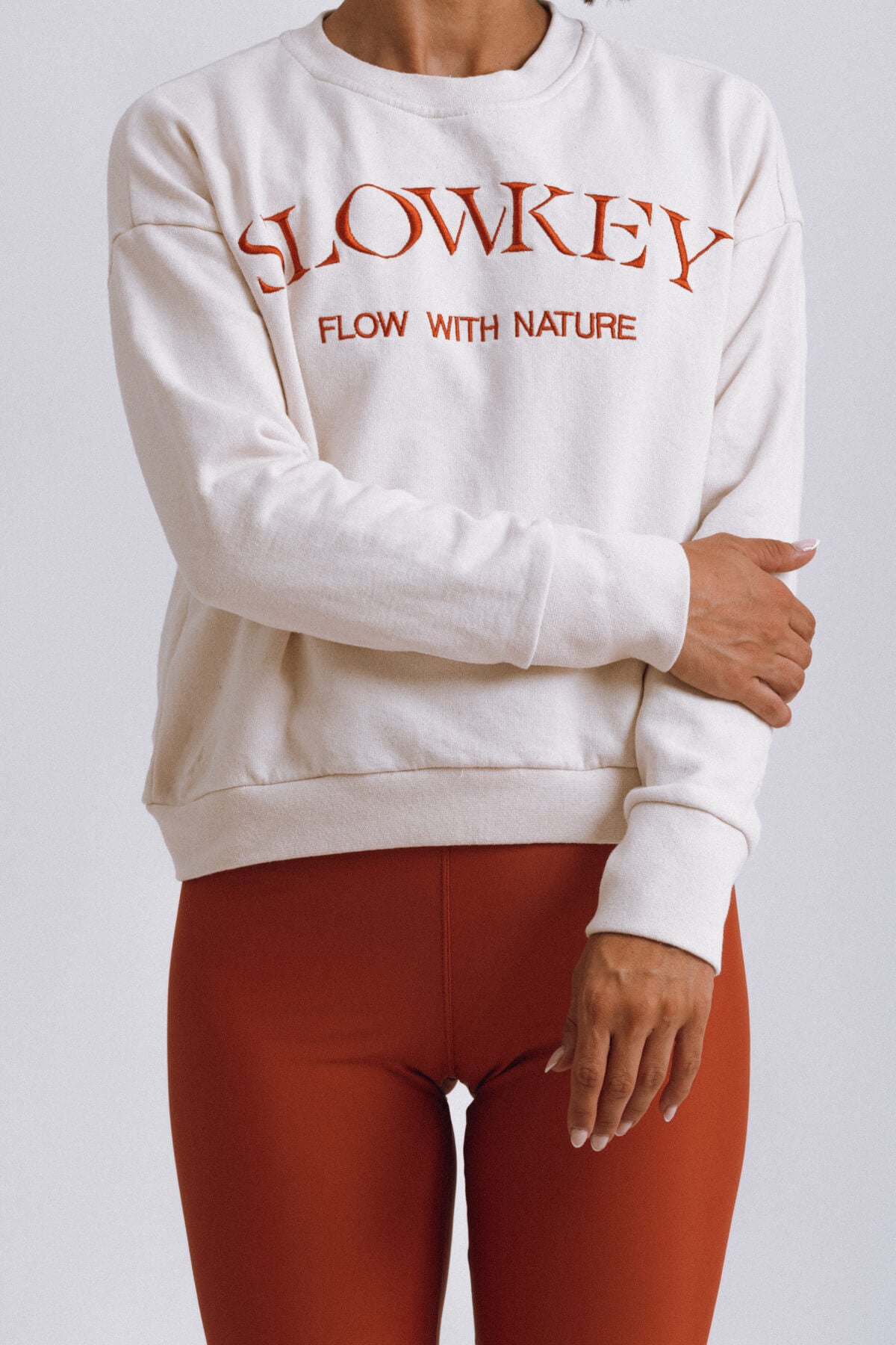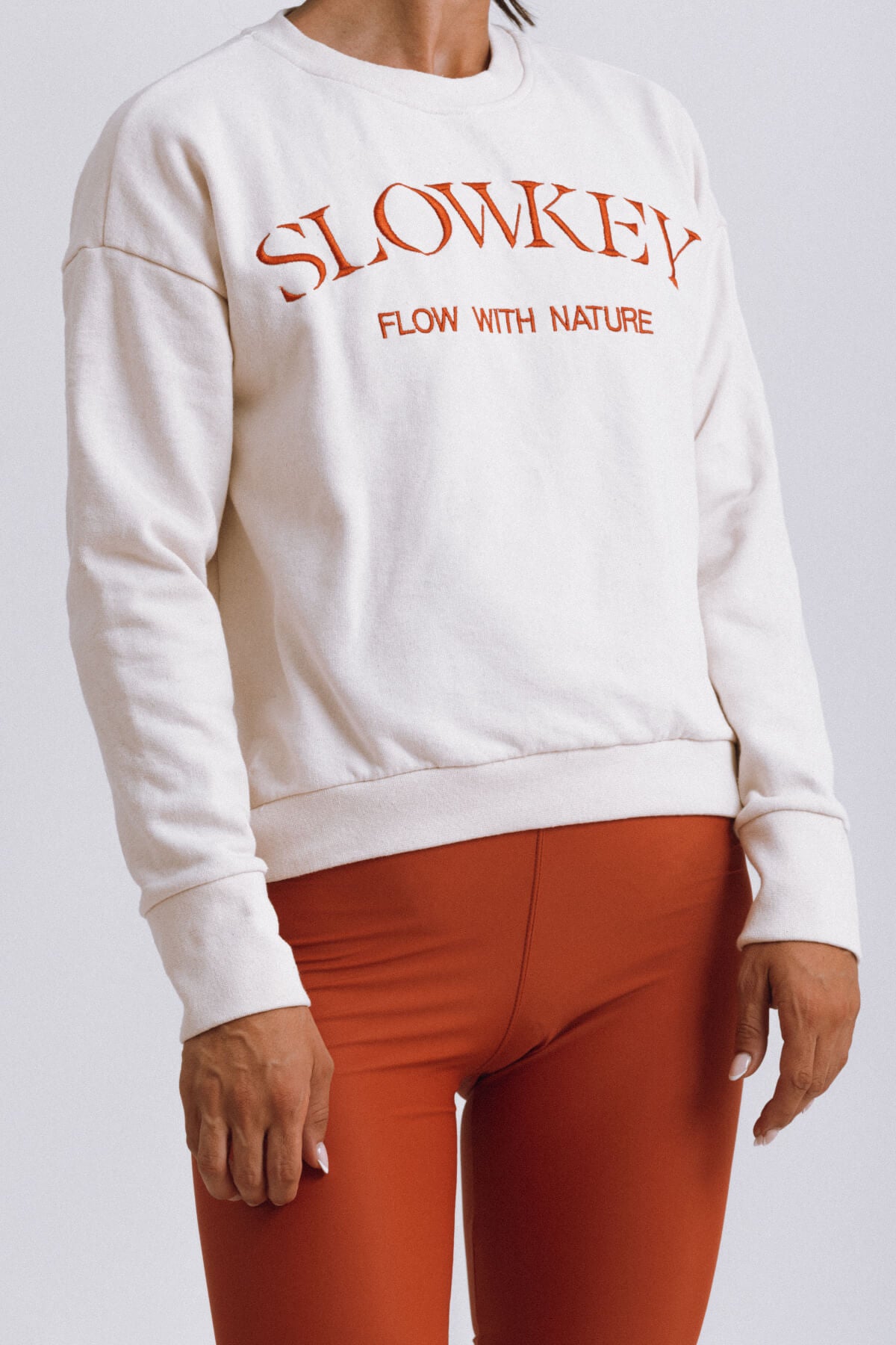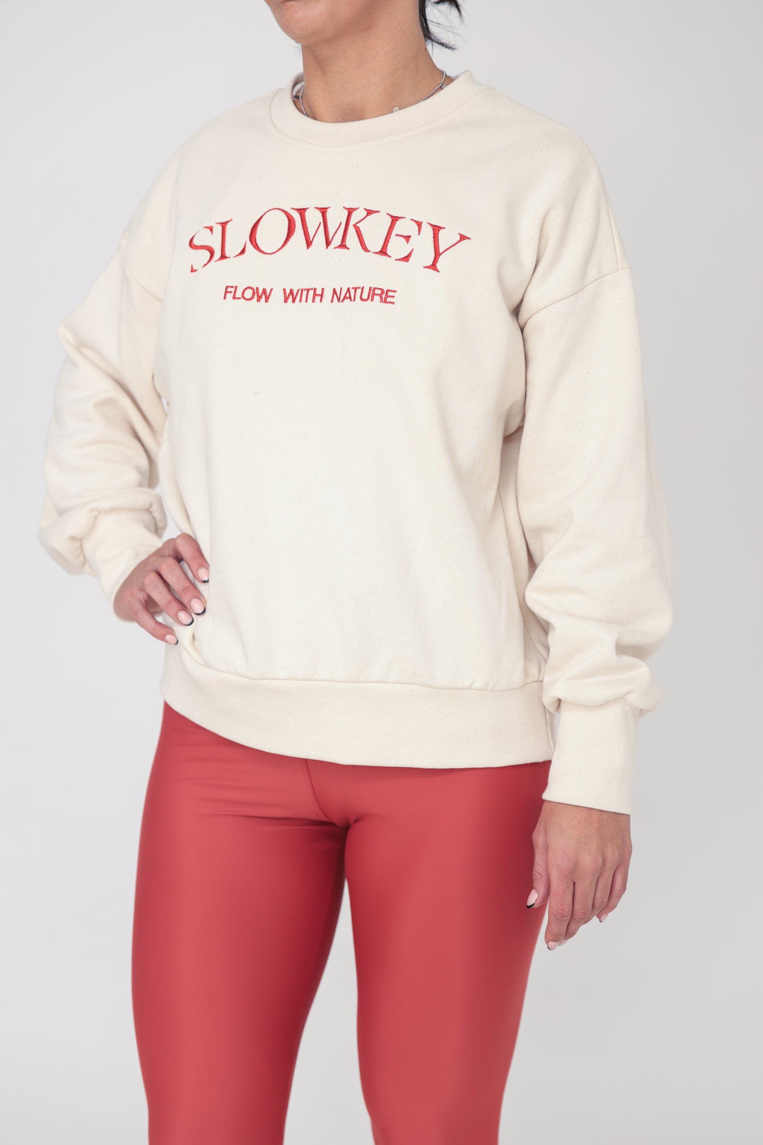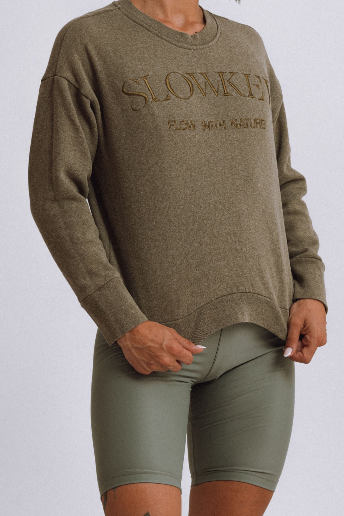 For the Jo Sweatshirt, comfort is a top priority. This crewneck sweatshirt is made from soft cotton that's kinder to the planet as either organic or recycled (check each color’s composition below). It has an oversized fit that makes you feel cozy and relaxed. It’s embroided with Slowkey’s logo at the chest and has fitted trims. Jo was made to be worn in and out of the gym.