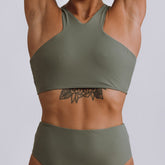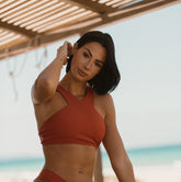 Meet the beautiful Carol top with a stylish deep v design on the back and a high scoop neck, this ultimate sports bra provides the perfect balance of functional and flattering, allowing you to move effortlessly while providing you with comfort and medium support during your workout. The Carol top is irresistible and practically you’ll never want to take it off.
